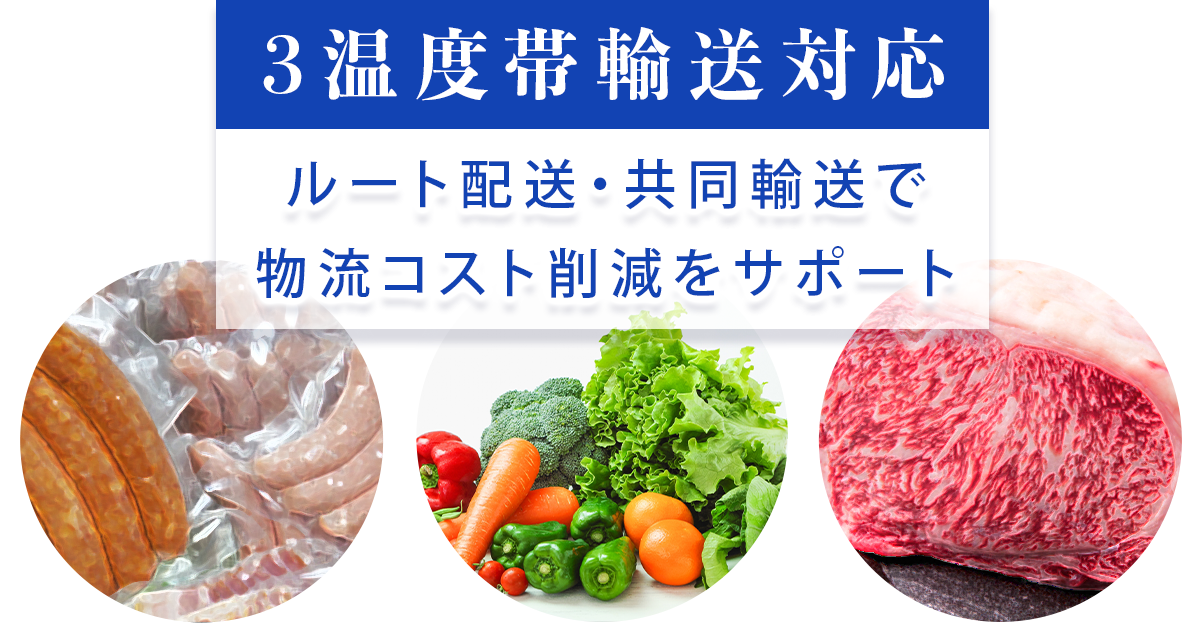 野菜・果物の生鮮食品からハム・惣菜などの食品、一般食品まで食品全般の輸送をおこない、